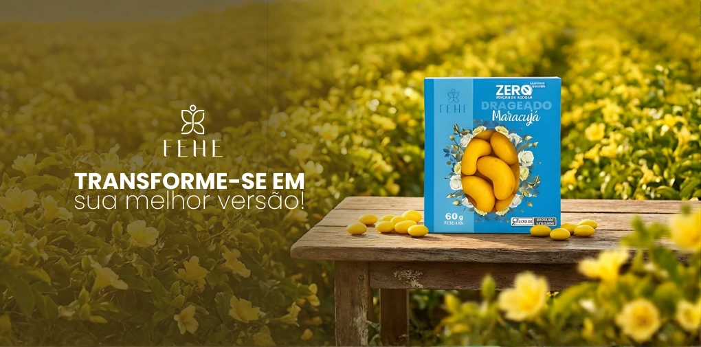 Na Fehe, os drageados ganham ainda mais significado. Todos são zero açúcar, zero lactose e zero glúten, pensados para quem busca equilíbrio sem abrir mão do sabor.