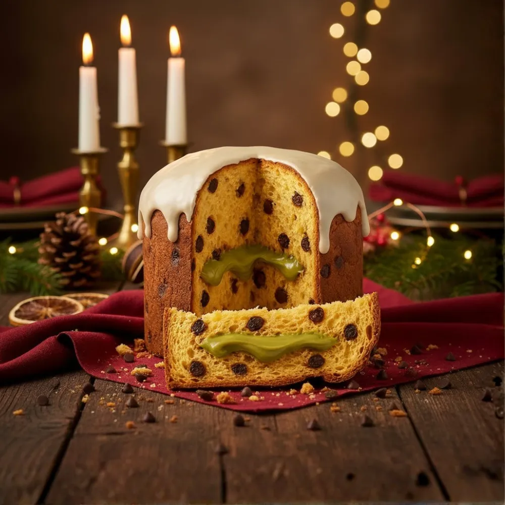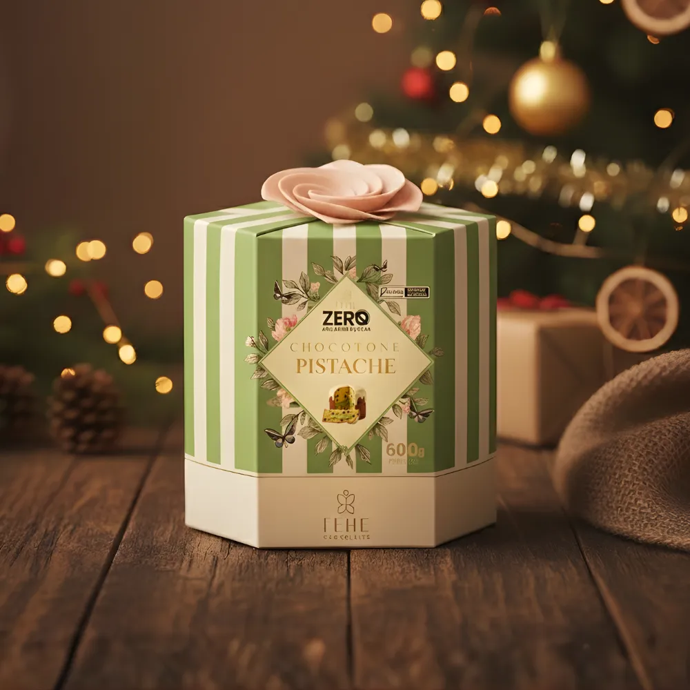 Para completar sua experiência, experimente também o nosso Chocotone Recheado de Doce de Leite Zero Açúcar, disponível em nosso site. Os dois juntos criam uma mesa natalina irresistível. Celebre o Natal com maciez, brilho e o sabor inconfundível do pistache.
