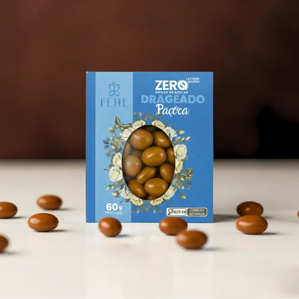 O Drageado de paçoca zero açúcar FEHE 60 g entrega aquele sabor que chama atenção logo na primeira mordida. É chocolate ao leite cremoso, combinado com o gosto marcante da paçoca, em uma versão pensada para quem quer prazer sem exageros. Aqui, o doce não pesa. Ele conquista.