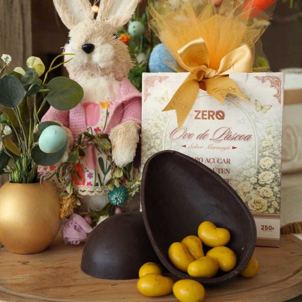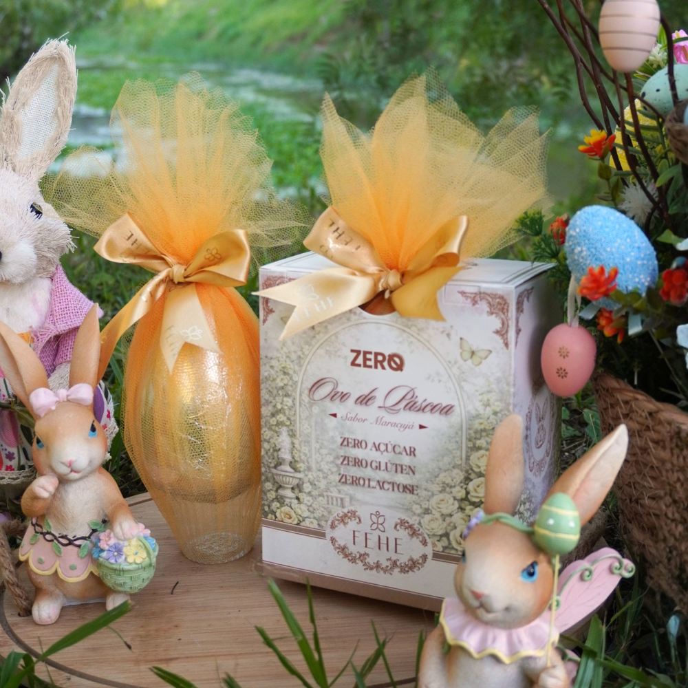E se você prefere sabores mais clássicos com um toque especial, vale conhecer também o nosso Ovo de Páscoa de Avelã Zero Açúcar. Com a combinação irresistível de chocolate e avelãs torradas, ele entrega cremosidade e crocância em perfeita harmonia. Com o Ovo de Páscoa Maracujá Fehe Zero Açúcar, a Páscoa ganha intensidade, frescor e uma experiência surpreendente.