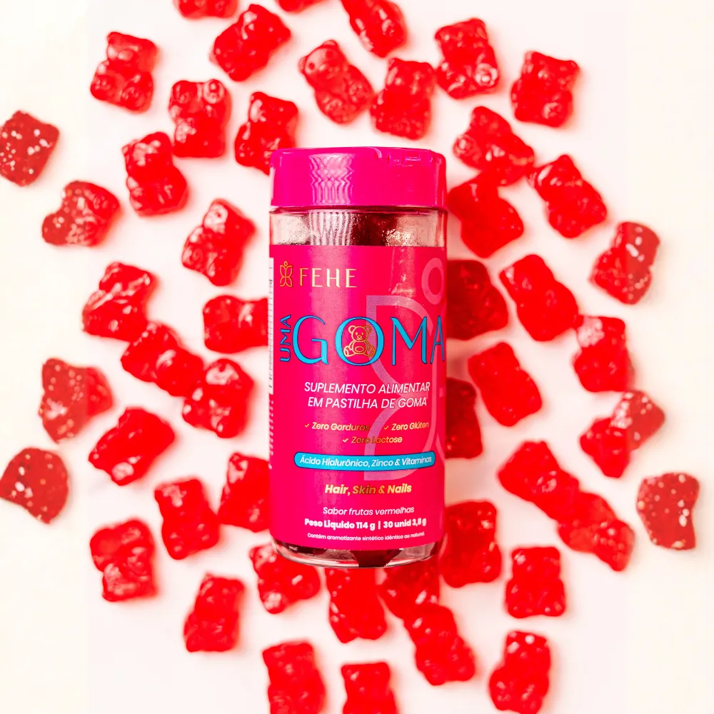 O Suplemento UMA Goma Fehe foi desenvolvido para mulheres que buscam praticidade, sabor e resultados reais no cuidado diário com cabelo, pele e unhas. Desde o primeiro uso, ele se destaca pela combinação equilibrada de vitaminas essenciais, antioxidantes, aminoácidos e ácido hialurônico. Essa união poderosa atua diretamente na firmeza da pele, no fortalecimento dos fios e no crescimento das unhas, oferecendo um suporte completo para a beleza de dentro para fora.